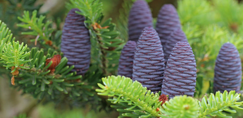 Firs are evergreen trees with a dense, compact pyramidal crown and upright cones. They prefer a cool moist climate. Nine species are native to North America and reach a mature height from 60 to over 250 feet. The needles, retained for more than two years, are usually flat with rounded tips and range from 1/2 to over 2 inches long. Cylindrical, upright cones (usually referred to as pine cones), or flowers, are located on upper branches.