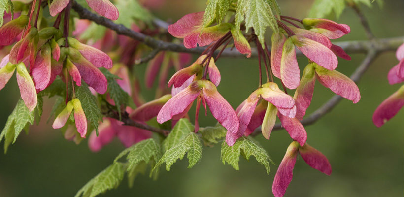 Maples are trees and shrubs with worldwide distribution, of which 13 species are native to US. Almost all maples are deciduous with distinct, palmate leaves (with parts diverging from a common base, as the fingers of a hand). The leaf is used as a logo for the Toronto Mapleleafs hockey team. Fruit are paired, winged seeds, known as samara. Many maples are popular for ornamental and street plantings. Acer negundo (box elder) differs from other maples in that its leaves are pinnately compound (separate leaves diverge from one central stem), and in that it has male and female flowers on separate trees that are entirely wind-pollinated. Trees reach 30-100 feet in height and 2-4 feet in diameter. In the U.S. flowering usually occurs in early spring through April or May, but can begin in January and February for sugar maples and other species, with a few species in W. U.S. flowering in June and July.