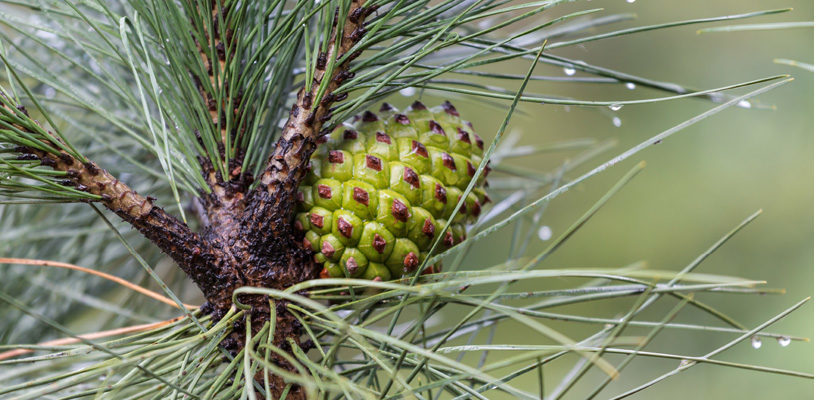 Pines are usually evergreen, and have needlelike, or linear leaves arranged in spirals with flattened cone scales. The mature cones are woody and the seeds are winged or wingless. These trees have a distinct scent, which is often simulated in cleaning products and air fresheners.